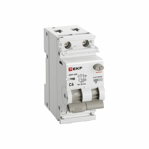 Дифавтомат 2Р 6А C тип AC 30мА 6кА 2мод АВДТ-63N EKF PROxima