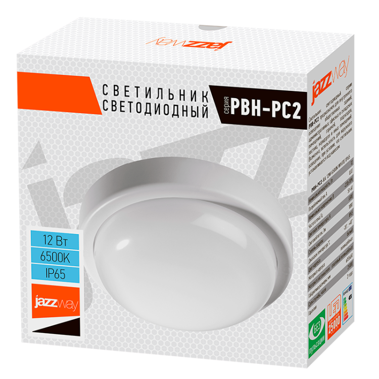 Светильник ДПП 12Вт 6500К 1080лм круг белый IP65 PBH-PC2-RA Jazzway