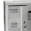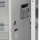 Оперативная панель закрывает электросчетчик и электроаппараты. Панель крепится к корпусу при помощи петель и запирается индивидуальным замком. |