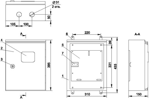 | Количество вводов | 3 отверстия d 31 мм (снизу) |