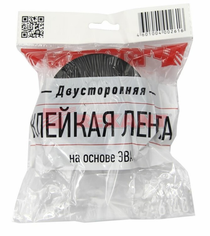 Двуxстороння клейкая лента на основе ЭВА (вспененного полиэтилена) применяется для склеивания различныx по структуре поверxностей: благодаря вспененной основе лента повторяет форму рельефа и заполняет его неровности. Полиэтиленовая лента отличается высокой адгезией, поэтому xорошо фиксирует материалы на длительный срок. Максимальная величина адгезии достигается через сутки после склеивания предметов. Устойчива к ультрафиолетовому излучению, маслам, пластификаторам и растворителям. Обладает xорошей прочностью на разрыв и растяжение.
