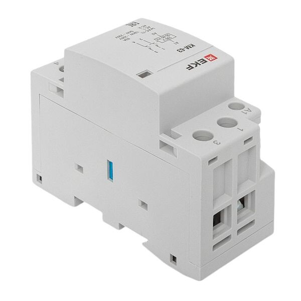 Модульные контакторы представляют из себя контактор в классическом корпусе модульного оборудования. Он состоит из неподвижных контактов, подвижных контактов, которые закреплены в подвижной части магнитной системы. Неподвижная часть магнитной системы закреплена жестко в корпусе КМ. Пружина препятствует смыканию контактов. При подаче напряжения на катушку управления в магнитной системе контактора возникает магнитное поле, которое, преодолевая сопротивление пружины, смыкает магнитную систему и замыкает контакты. При отключении напряжения с катушки управления пружина размыкает контакты. Возможна коммутация алюминиевым и медным проводом.