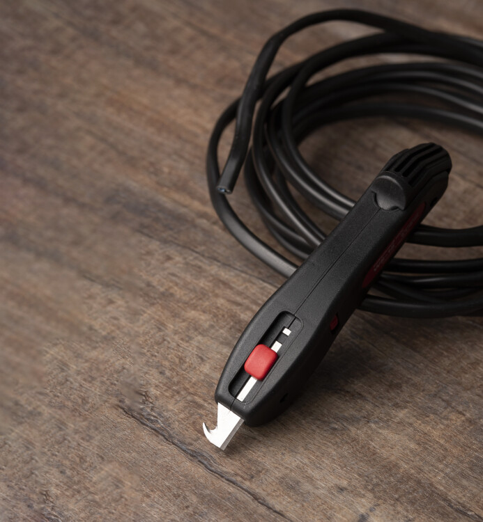 Кабельный нож WS-15 служит для быстрого и аккуратного снятия ПВХ-оболочки с круглых кабелей диаметром от 4 до 28 мм с помощью вращающегося лезвия-эксцентрика, позволяющего выполнять как круговой поперечный, так и продольный рез оболочки кабеля