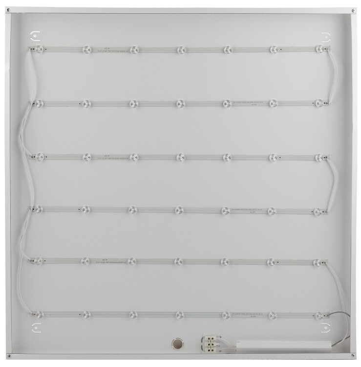 Светодиодная панель. Светит, как ультратонкая панель приятным равномерным светом, и не уступает по яркости, при этом имеет значительно более низкую цену. Драйвер встроен в корпус светильник полностью готов к установке и легко монтируется на потолок любого типа как в качестве встраиваемого светильника, так и накладным или подвесным способом. Легко устанавливается в потолки Армстронг, на гипсокартонные, бетонные потолки. Позволяет в разы ускорить, а значит и удешевить монтаж.