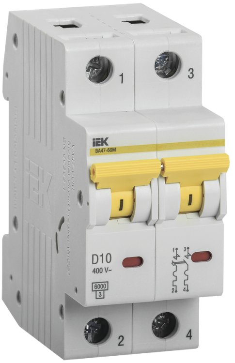 Автомат 2Р 10А D 6кА ВА47-60 IEK