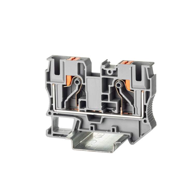 Проходная клемма с зажимом Push-in предназначена для соединения двух проводников, а за счет кнопки-толкателя обеспечивается защита от ошибок при монтаже и случайного прикосновения. Монтаж осуществляется на DIN-рейку OMEGA. Температура эксплуатации от -40 до +105оС. Корпус выполнен из ПА 6.6 с классом горючести V0 UL-94.