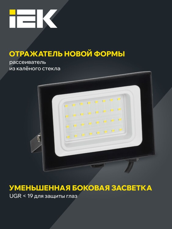 Прожектор светодиодный СДО 06-30 IEK LPDO601-30-65-K02 (30 Вт, SMD 2835, 2400 лм, 6500 К, IP65), черный