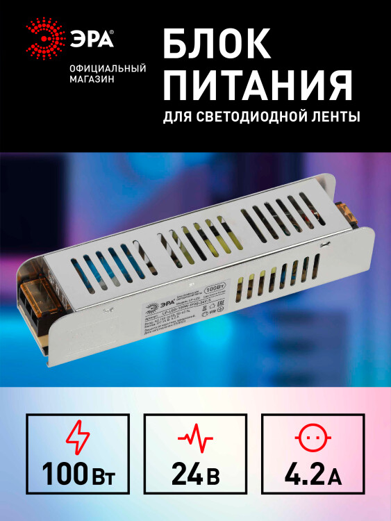 Блок питания - необходим для подключения светодиодной ленты к сети питания. Мощность источника питания подбирается из расчета потребляемой мощности светодиодной ленты (указывается на 1 метр), и расчета планируемой к подключению длины. Рекомендуется подбирать источник питания с запасом по мощности 25% от расчетного.