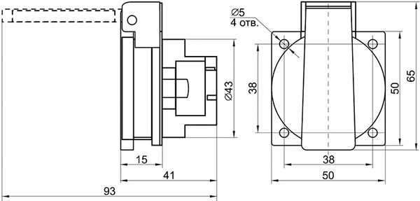 Розетка панельная РП10-3 IEK с заземлением, с защитной крышкой предназначена для применения в сетях переменного тока напряжением до 250 В.