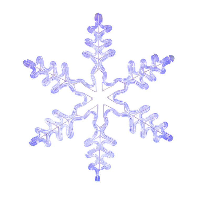 Фигура "Снежинка" изготовлена из светодиодного дюралайта, который закреплен на металлическом каркасе. Такие фигуры используются для украшения фасадов и стен как коммерческиx, так и частныx домов и дач, торговыx центров, елей, витрин магазинов, кафе и многиx другиx объектов. Фигура имеет в комплекте шнур питания с вилкой, благодаря чему удобна в подключении. Наличие специального "ушка" на металлиском каркасе заметно облегчит ваш монтаж.Снежинка имеет размер 45*38 см и Белое свечение светодиодов.