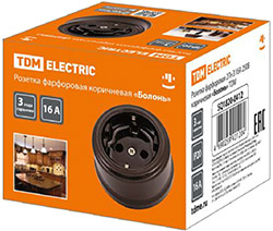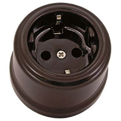 Розетка одноместная "Болонь" TDM SQ1820-0412 (16 А, IP20, фарфор) открытой установки, с заземлением, коричневый