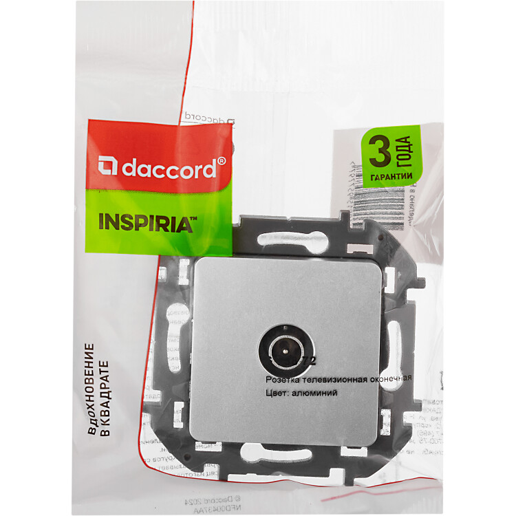 Розетка телевизионная оконечная Legrand 673872 Inspiria (10 дБ, 862 МГц) скрытой установки, алюминий