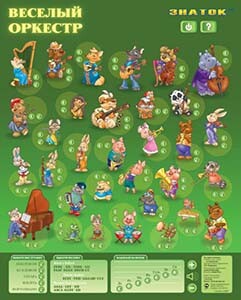 Звуковой плакат "Веселый оркестр" содержит информацию, звуки и изображения самых популярных музыкальных инструментов.