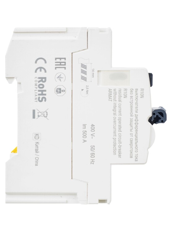 Выключатели дифференциального тока ARMAT серии R10N выполняют функцию защиты поражения человека электрическим током, а так же защиты от пожара при возникновении замыкания на землю. Модельный ряд включает в себя устройства с типами защитных характеристик по дифференциальному току AC, A, AC-S, A-S; номинальными токами от 25 до 100 А; номинальными дифференциальными токами срабатывания от 10 до 300мА. Условная отключающая способность ВДТ ARMAT серии R10N составляет 10 кА.