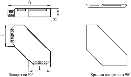 Поворот на 90° горизонтальный применяется для организации горизонтального поворота кабельной трассы на 90°.