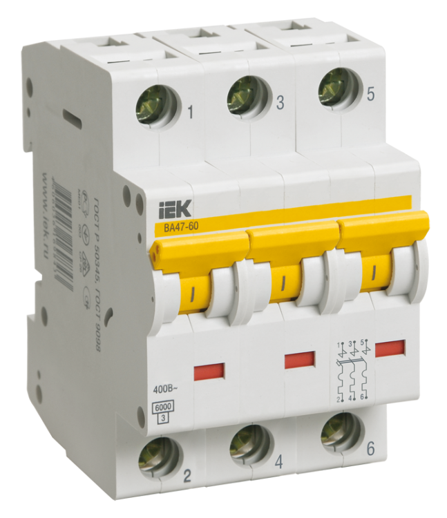 Автомат 3Р 6А D 6кА ВА47-60 IEK