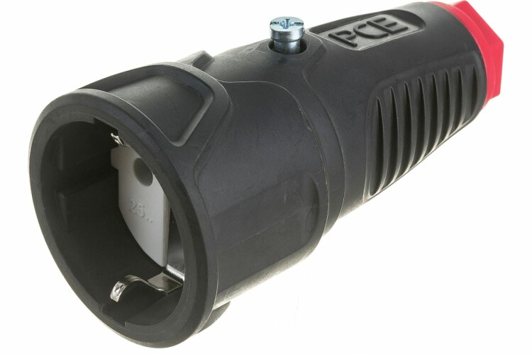 Розетка кабельная PCE 2510-sr Taurus2 (16 А, 250 В, резина, IP20) с заземлением, черный / красный