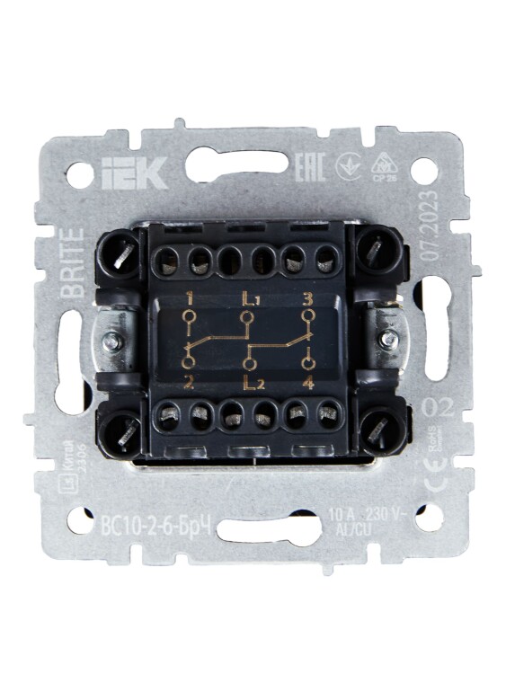 Брайт черный переключатель 2кл скрытая 10А IP20
