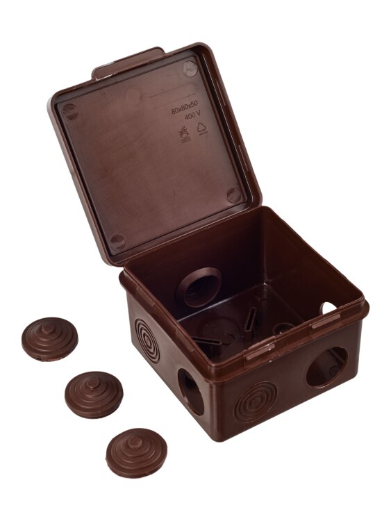 Монтажные коробки для открытого монтажа под структуру дерева предназначены для разветвления проводов и кабелей, также для скрытия и дополнительной защиты мест коммутации. Коробки для открытого монтажа используются как часть системы решений для деревянного домостроения, состоящей из гофрированных труб, клипс и коробок в цвет дерева.