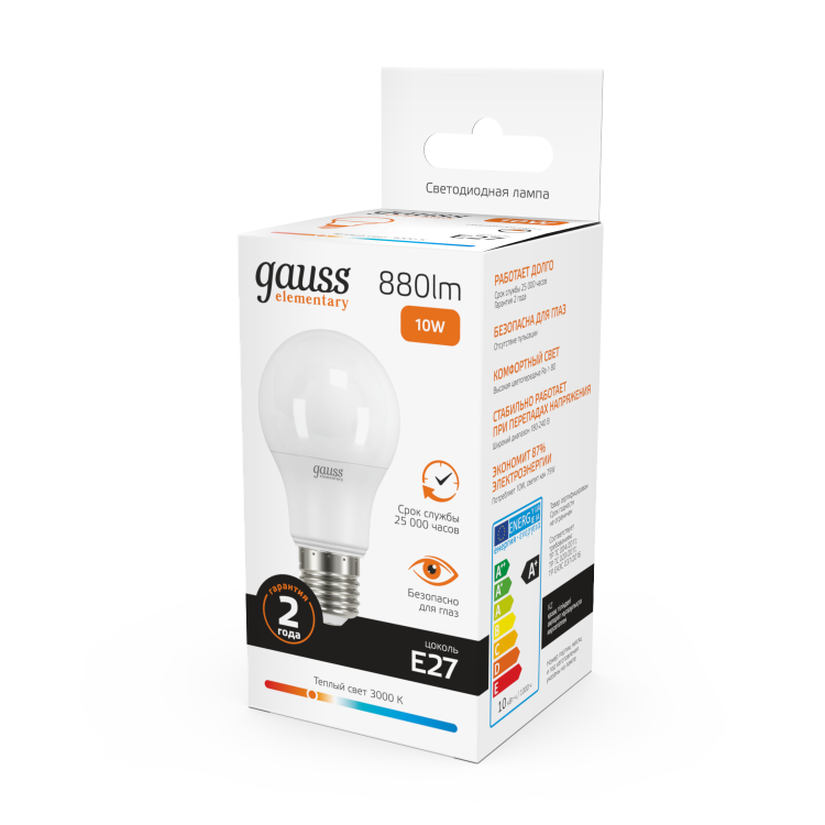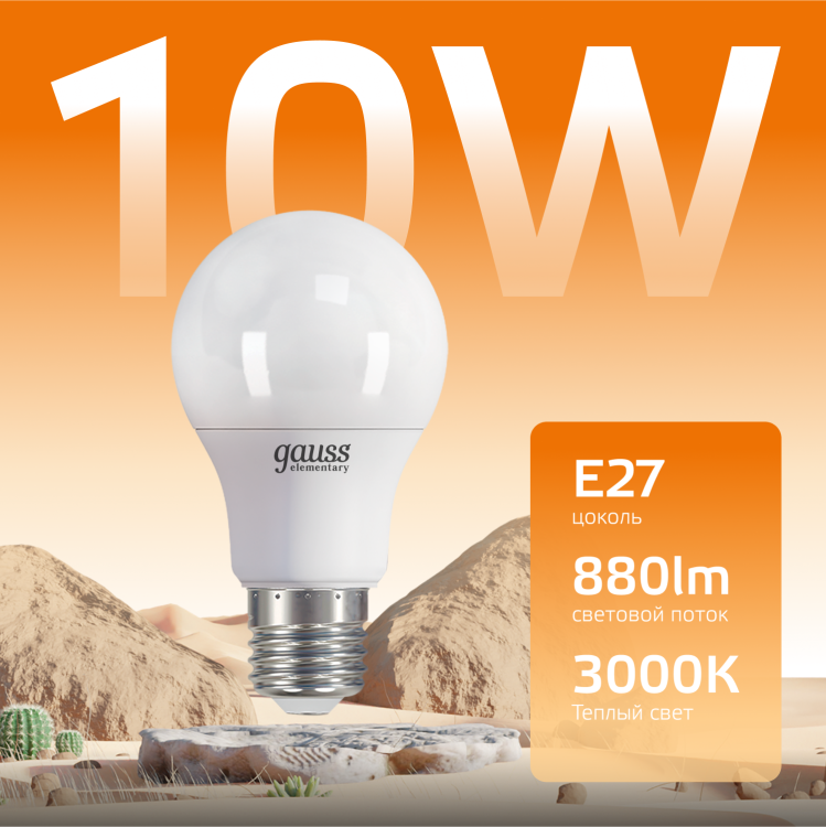Лампа Gauss Elementary A60 созданная с использованием передовых LED-технологий, сочетает достойную яркость с низким энергопотреблением и впечатляющим сроком службы. Она не просто обеспечивает удовлетворительное освещение в любом помещении, но создает уютную и приятную атмосферу. Теплый свет с температурой 3000K добавит непринужденности и расслабления как в спальню, так и в комнату отдыха.