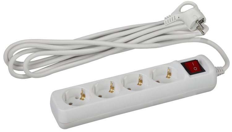 Удлинитель электрический Эра U-4es-5m-3x1 с заземлением, с выключателем, ПВС, 3x1мм2, 4 розетки, 5 м. Рассчитан на максимальную мощность 16А/3500 Вт. Удлинитель Эра станет Вашим надежным помощником, если Ваши любимые электроприборы находятся далеко от розеток. Провод в удлинителях Эра сделан из 100% меди, что делает его абсолютно пожаробезопасным. Корпус выполнен из ударопрочного и негорючего пластика (полипропилен). В моделях с заземлением у вилки есть кольцо для удобного извлечения из розетки. Модель удлинителя на 16А позволяет подключить мощные бытовые приборы общей нагрузкой до 3500Вт. Не бойтесь включить чайник, обогреватель, микроволновку или другие электроприборы. Толстый провод удлинителя Эра гарантирует полную безопасность. Дизайн удлинителя разработан в России командой Эра Style.