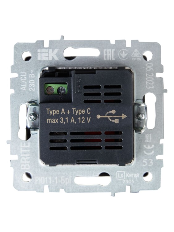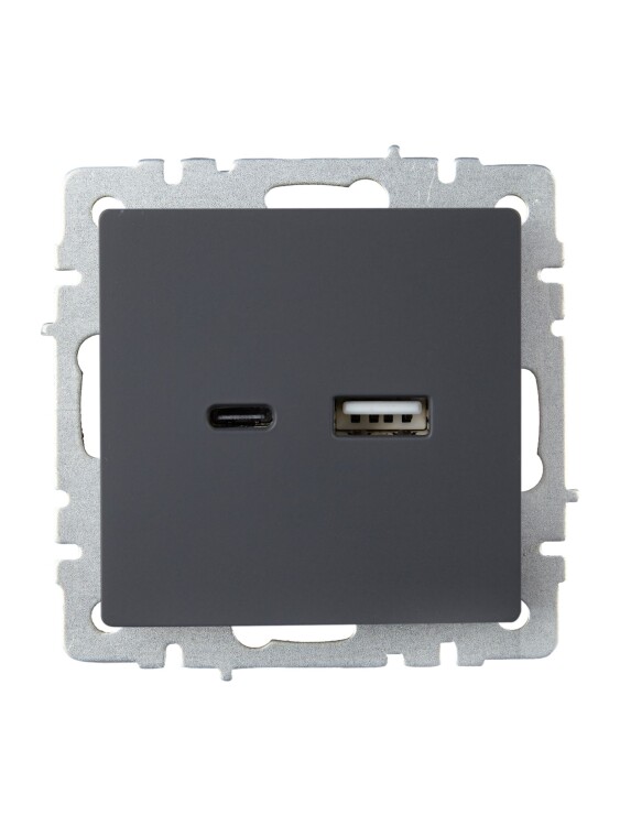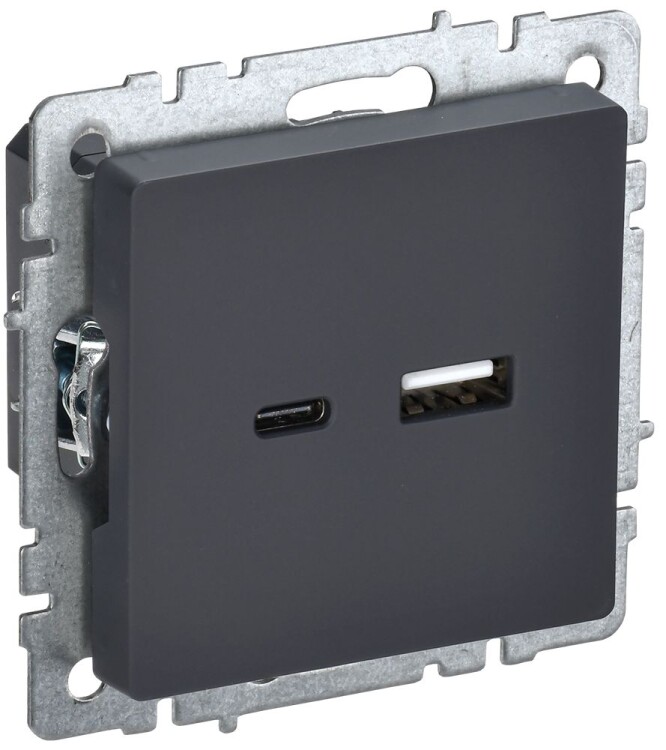Розетка двойная USB A+C IEK РЮ11-1-БрГ Brite (12 В, 3,1 А, IP20) скрытой установки, графит