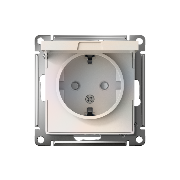 Розетка одноместная Schneider Electric ATN000446 AtlasDesign (16 А, IP20) скрытой установки, с заземлением, с защитными шторками, с крышкой, жемчуг