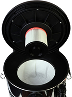 Для одновременного (автоматического и синхронного) включения и отключения пылесоса и электроинструмента при принудительном удалении продуктов пиления, строгания, фрезерования и т.п. в крышке пылесоса предусмотрена электрическая розетка, предназначенная для подключения используемого электроинструмента.