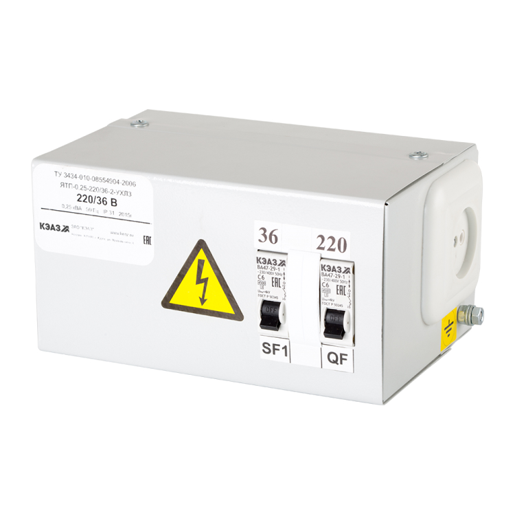 Ящик с понижающим трансформатором ЯТП КЭАЗ однофазный, с естественным воздушным охлаждением, предназначен для работы от сети переменного тока 220 В частотой 50 - 60 Гц.