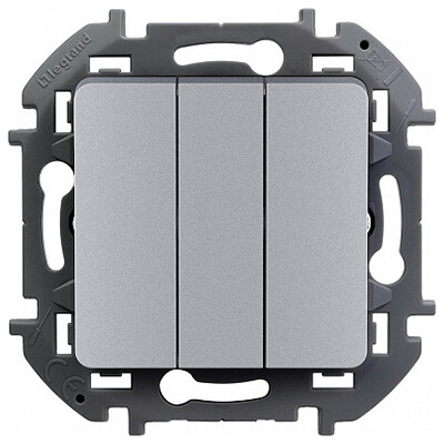 Выключатель трехклавишный Legrand 673642 Inspiria (20 АX, IP20) скрытой установки, алюминий