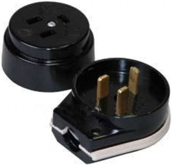 Разъем РШ-ВШ TDM SQ1812-0002 (розетка + вилка, 32 А, 250 В, 2Р+РЕ, IP20, карболит) открытой установки, черный