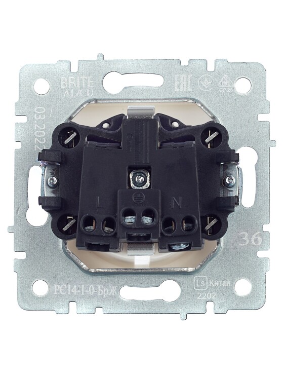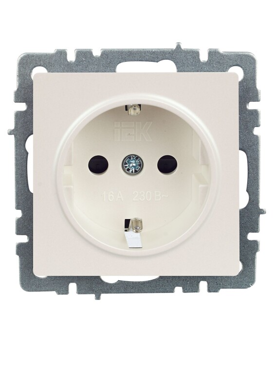 Розетка одноместная IEK РС14-1-0-БрЖ Brite (16 А, IP20) скрытой установки, с заземлением и защитными шторками, жемчуг