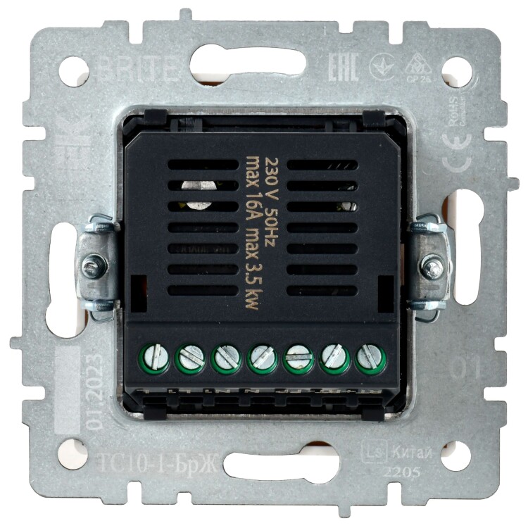 Терморегулятор электронный IEK серии электроустановочных изделий Brite предназначен для скрытой установки внутри помещений.
