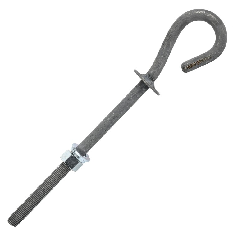 Крюк монтажный сквозной B 16/240 применяется для крепления анкерных или поддерживающих зажимов на железобетонных, металлических или деревянных опорах с монтажными отверстиями.