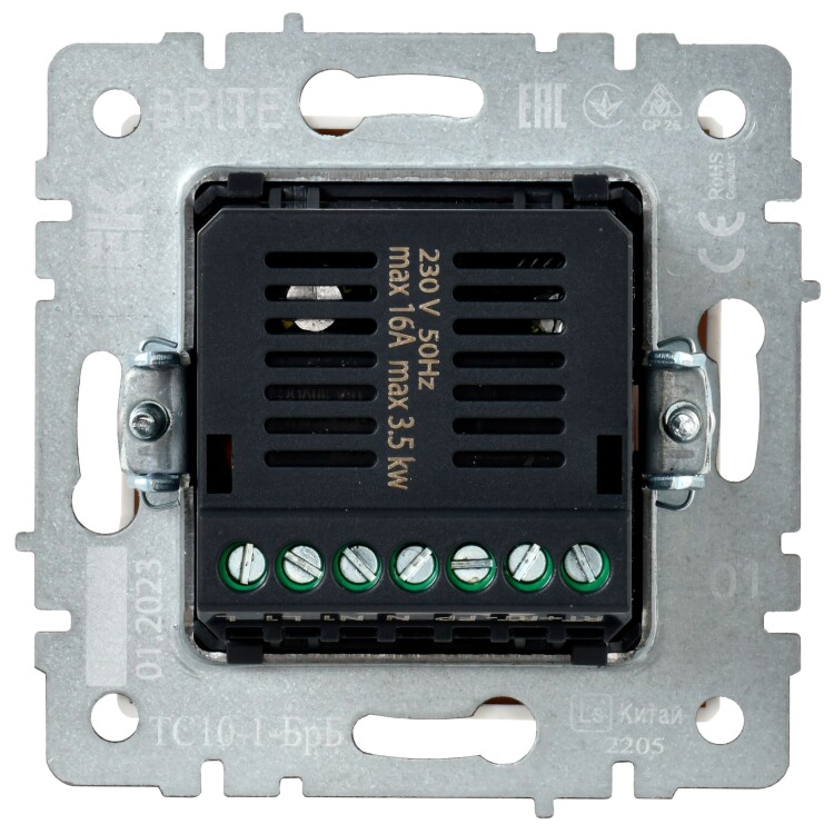 Терморегулятор электронный IEK серии электроустановочных изделий Brite предназначен для скрытой установки внутри помещений.