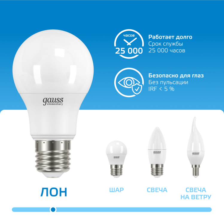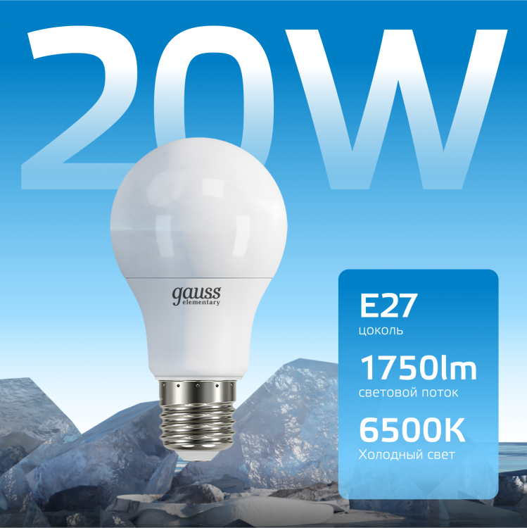 Лампа Gauss Elementary A60 20W - ваш незаменимый помощник в обеспечении яркого и эффективного освещения.