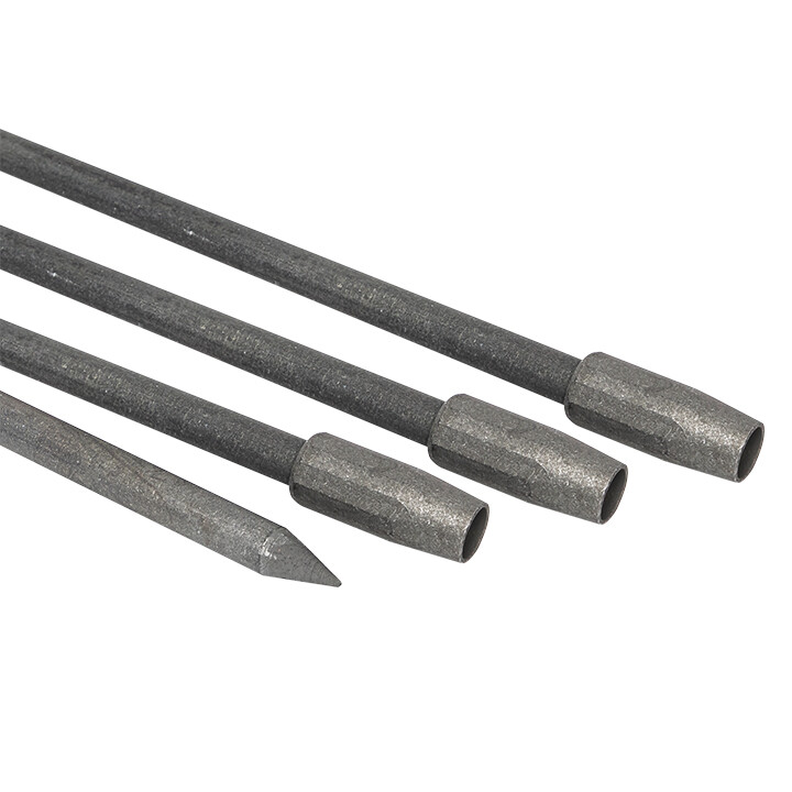 - Последовательное соединение стержней предотвращает разрушение изделия при попадании штыря заземлителя в твердые предметы на глубине, увеличивает глубину монтажа.