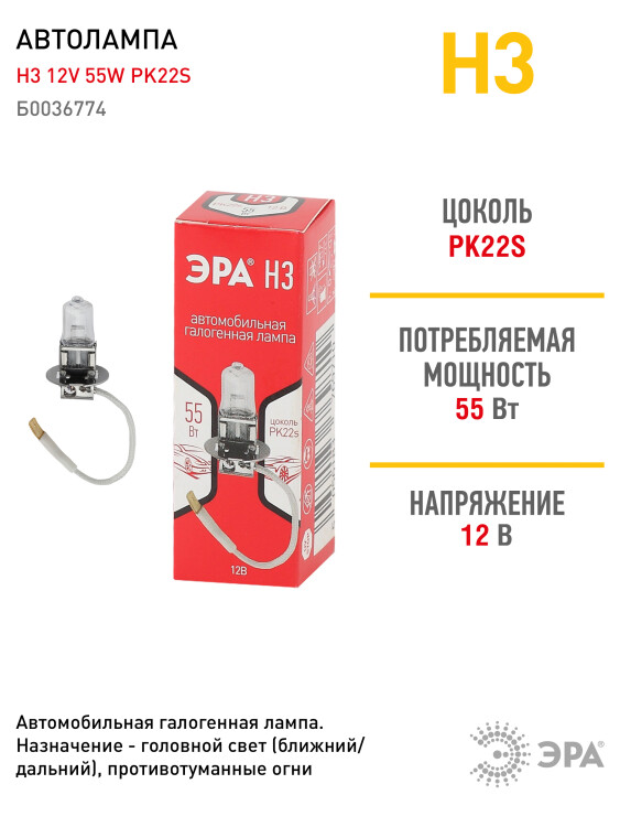 Автомобильная галогенная лампа. Назначение - головной свет (ближний/дальний), противотуманные огни