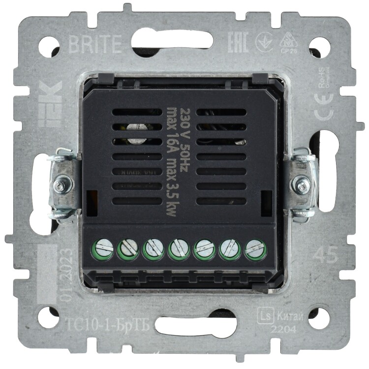 Терморегулятор электронный IEK серии электроустановочных изделий Brite предназначен для скрытой установки внутри помещений.