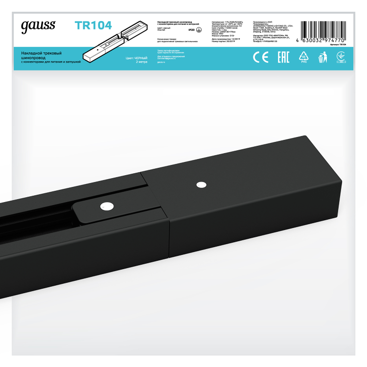 Шинопровод Gauss TR104 с коннекторами для питания и заглушкой. Способ крепления к стенам и потолку - накладной монтаж. Является частью трекинговой системы, которая может быть разной длины и соединяться между собой прямыми, угловыми и крестообразными коннекторами. Длина шинопровода 2м, цвет корпуса черный, материал алюминий, степень защиты IP 20. Шинопровод может быть использован в доме или квартире: спальня, детская, гостинная, гардеробная, коридор. И гостевых залах баров, ресторанов, торговых центров, выставочных комплексов.