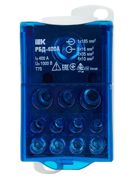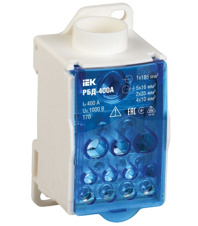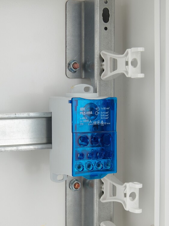 Распределительные блоки РБД предназначены для использования в качестве клеммного зажима при подключении к проводнику большего сечения нескольких проводников меньшего сечения, для создания упорядоченных систем распределения в шкафах, для организации главной заземляющей шины.