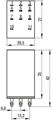 На разъемах расположены зажимы выводов переключающих контактов и катушки.