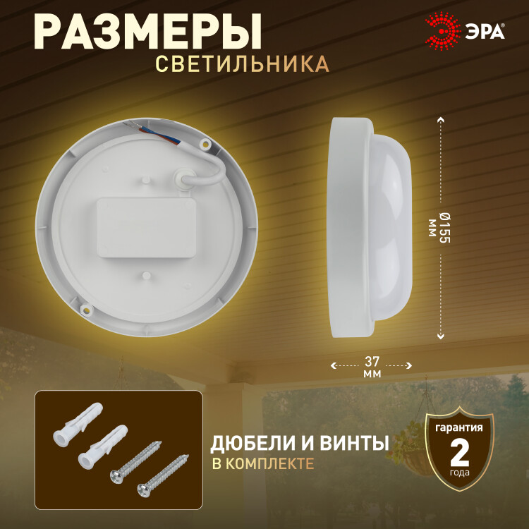 Пылевлагозащищённый LED-светильник IP65 круглой формы. Оснащён оптико-акустическим датчиком движения. В случае отсутствия какого-либо движения, свет гаснет. Если время задержки, 20-25 секунд, еще не истекло и зафиксировано движение, тогда начинается новый отсчет.Светильники срабатывают на уровень освещенности. Порог срабатывания