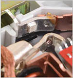 Увеличенная прочность в зоне присоединения проводников за счет двух дополнительных заклепок и монолитной лицевой панели. |