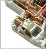 Дополнительная защита от прогорания корпуса автоматического выключателя и отвод тепла за счет пластиковой и металлической антипрогарных пластин. |