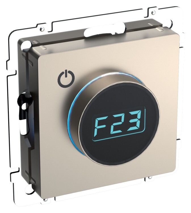 Терморегулятор электронный IEK ТС10-1-БрШ Brite (16 А, IP20) скрытой установки, с подсветкой, шампань