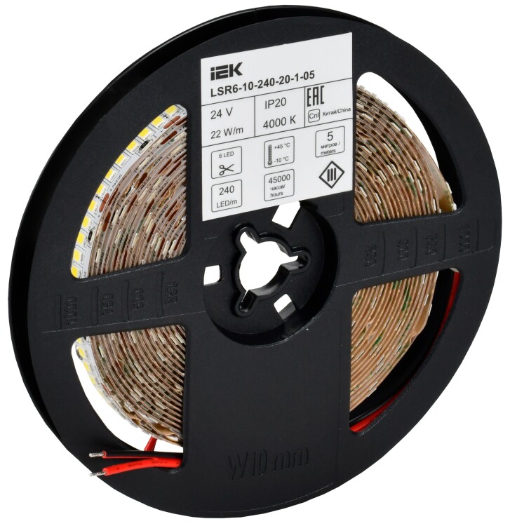 Лента светодиодная IEK LSR6-10-240-20-1-05 (2835, 24 В, 22 Вт/м, 240 led/m, 2600 лм/м, 4000 К, IP20)