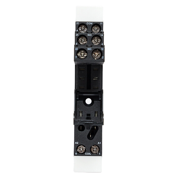 Разъемы модульные серии РМ4/РМ5 предназначаются для крепления реле промежуточных на 35-мм монтажной DIN-рейке. На модульном разъеме располагаются зажимы выводов переключающих контактов и катушки. Разъемы Push-in оснащены зажимными клеммами, в остальных разъемах используются винтовые клеммы.