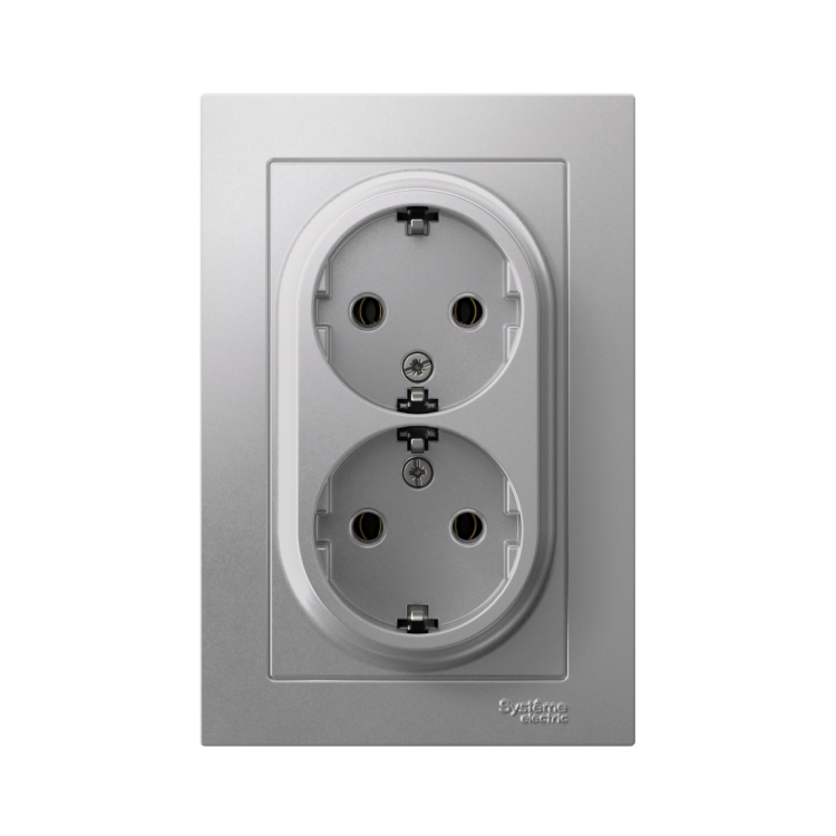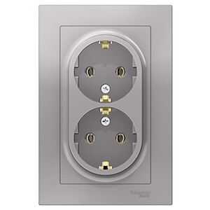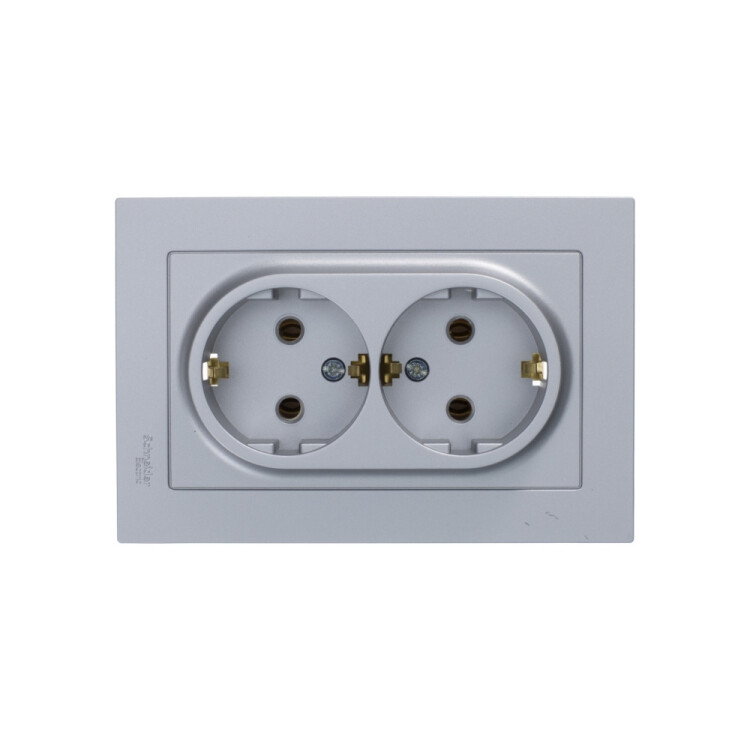 Розетка двухместная Schneider Electric ATN000324 AtlasDesign (16 А) скрытой установки, с заземлением, алюминий