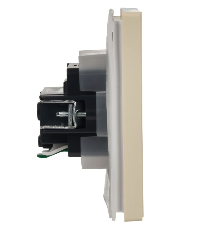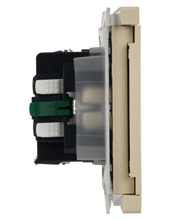 Розетка одноместная IEK FP419 Forte&Piano (16 А, IP44, безвинтовые зажимы) скрытой установки, с заземлением и шторками, с крышкой, ваниль